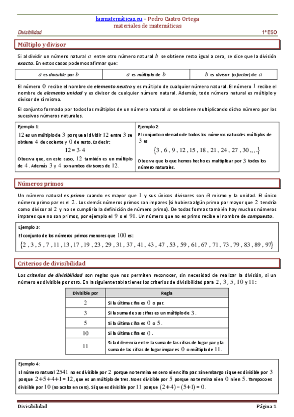 He publicado nuevos apuntes de 1º Conocimiento de las Matemáticas: divisibilidad.pdf