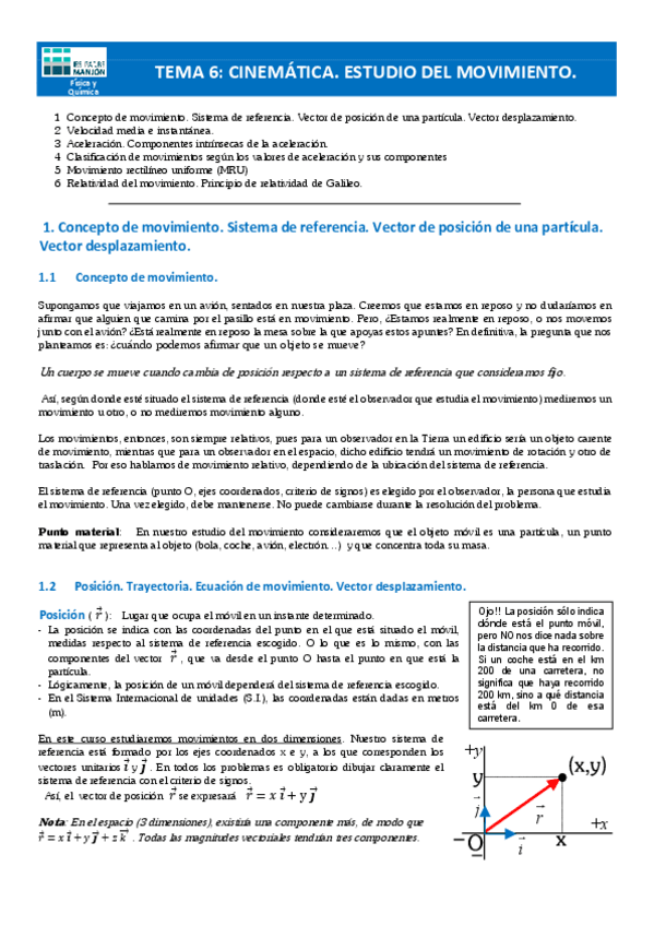 He publicado nuevos apuntes de 4º Física y Química: FQ1BT6cinematicaI.pdf