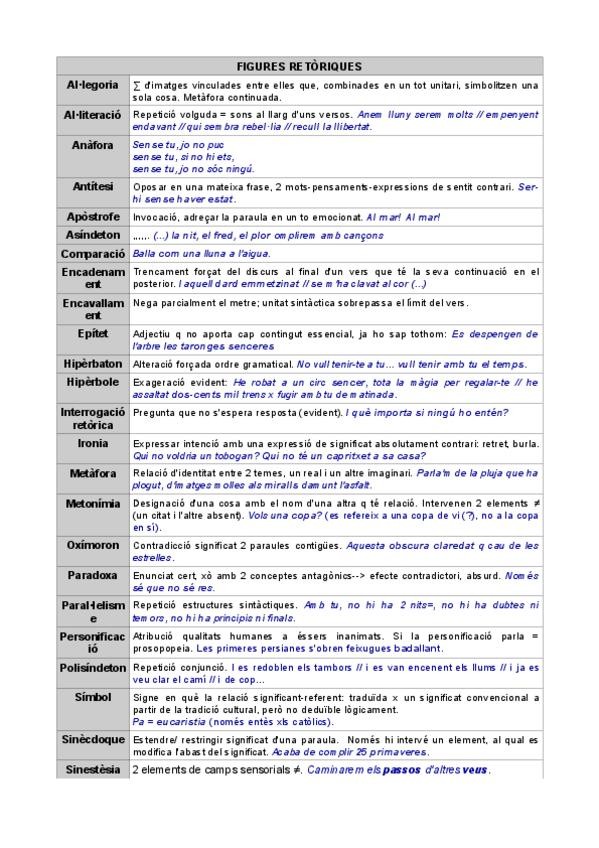 Esquema de la mètrica i els versos + llista de figures retòriques amb exemples de cançons