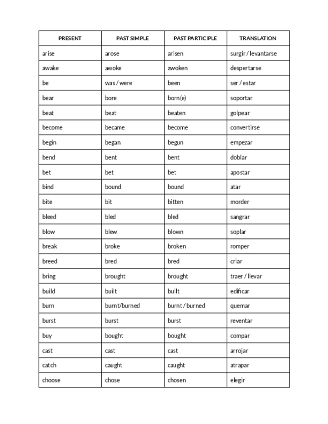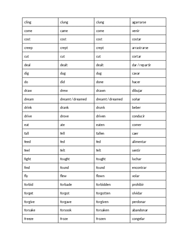 Lista de 200 verbos irregulares en inglés ordenados alfabéticamente. Muy completo para ESO, bachillerato o exámenes de Oxford y Cambridge.