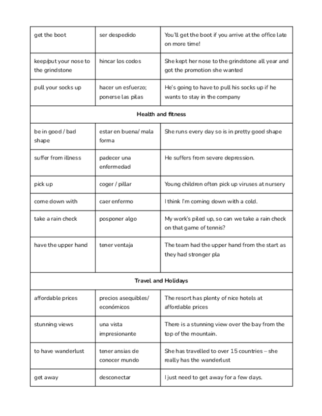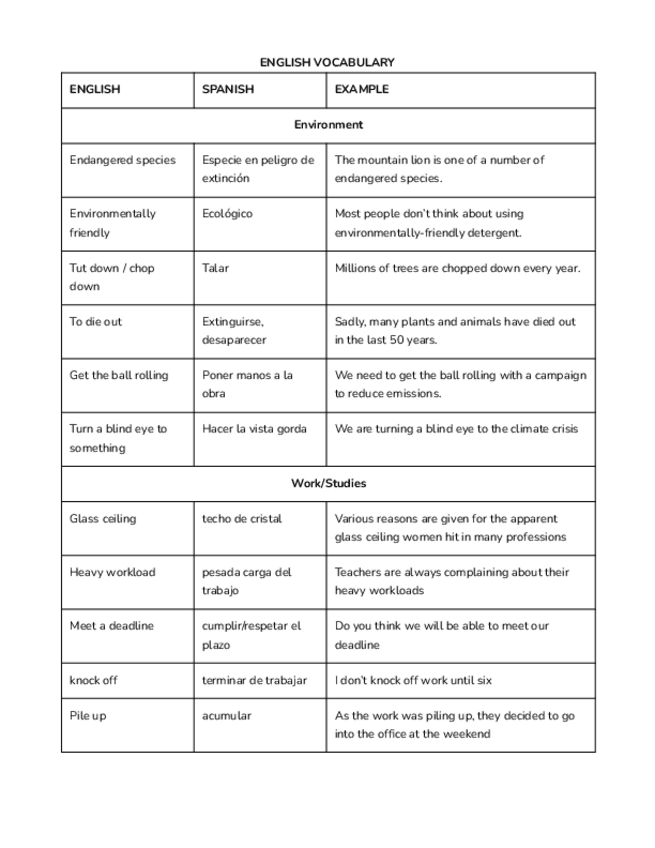Vocabulario de palabras y expresiones en inglés del examen de cambridge C1 o B2 con traducciones al español y ejemplos. Útil para bachillerato.