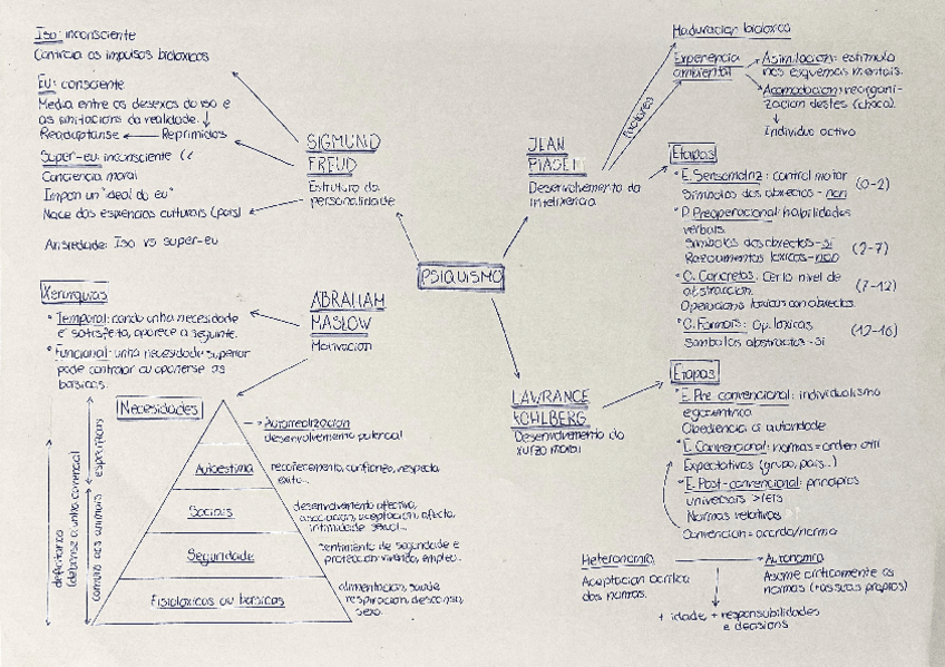 Esquema de la estructura psicosomática de la personalidad con los cuatro autores principales. En gallego.