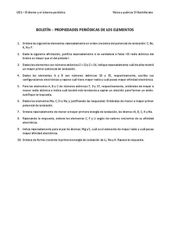 Para practicar la electronegatividad, afinidad electrónica etc