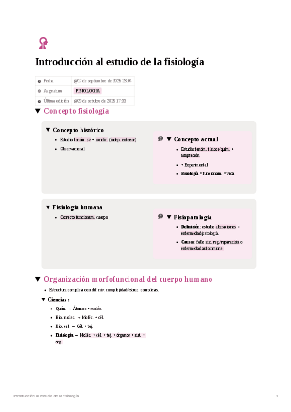 Introducción al estudio de la fisiología