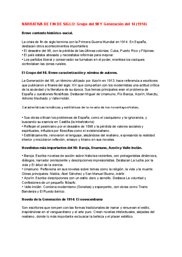 Apuntes literatura (grupo del 98 y generación del 14)