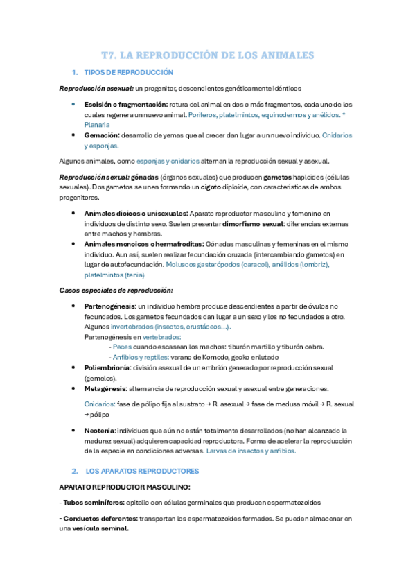 Tema 7, 1ª de bach: La reproducción de los animales.