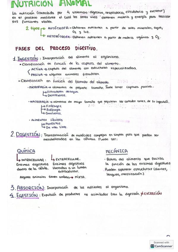 Apuntes de la nutrición en animales detalladamente, los aparatos(digestivo,respiratorio, circulatorio y excretor)