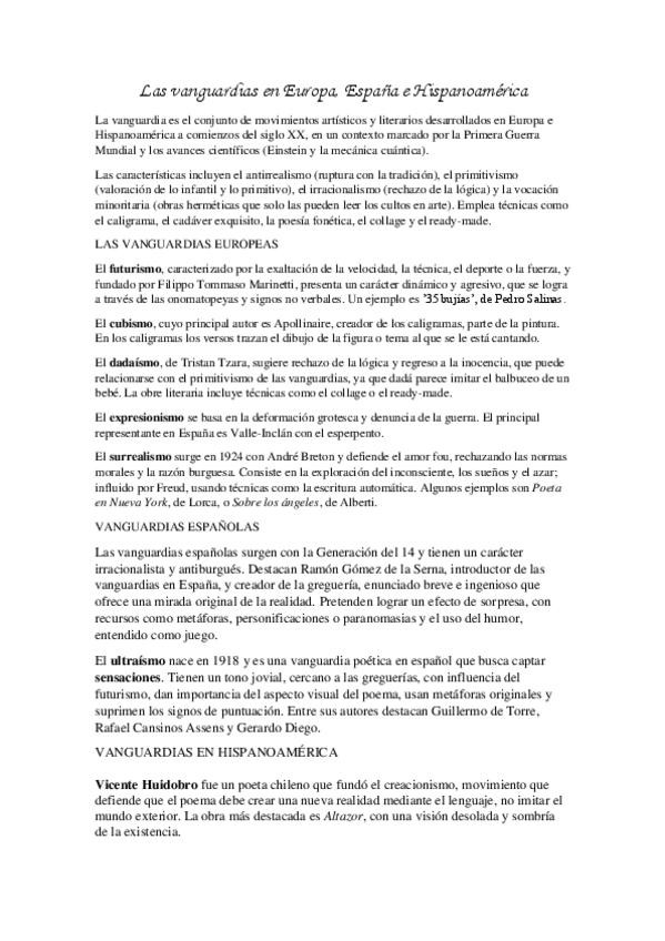 4. Las vanguardias en Europa, España e Hispanoamérica