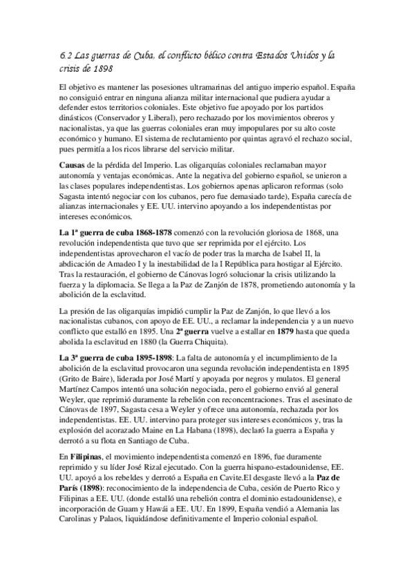 6.2 Las guerras de Cuba, el conflicto bélico contra Estados Unidos y la crisis de 1898