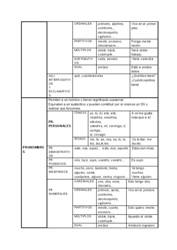 Apuntes de castellano sobre las categorías gramaticales.