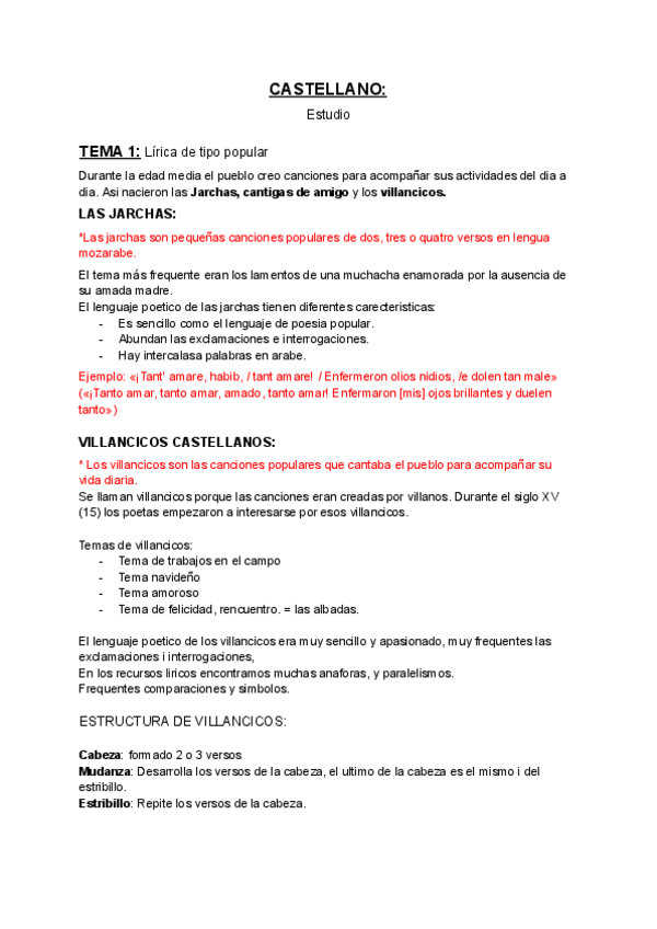 TEMA 1: Lírica de tipo popular VILLANCICOS CASTELLANOS: TEMA 2: El mester de juglaría TEMA 3: El mester de clerecía