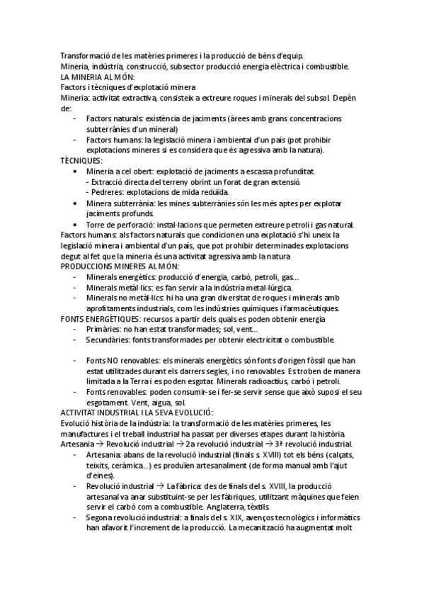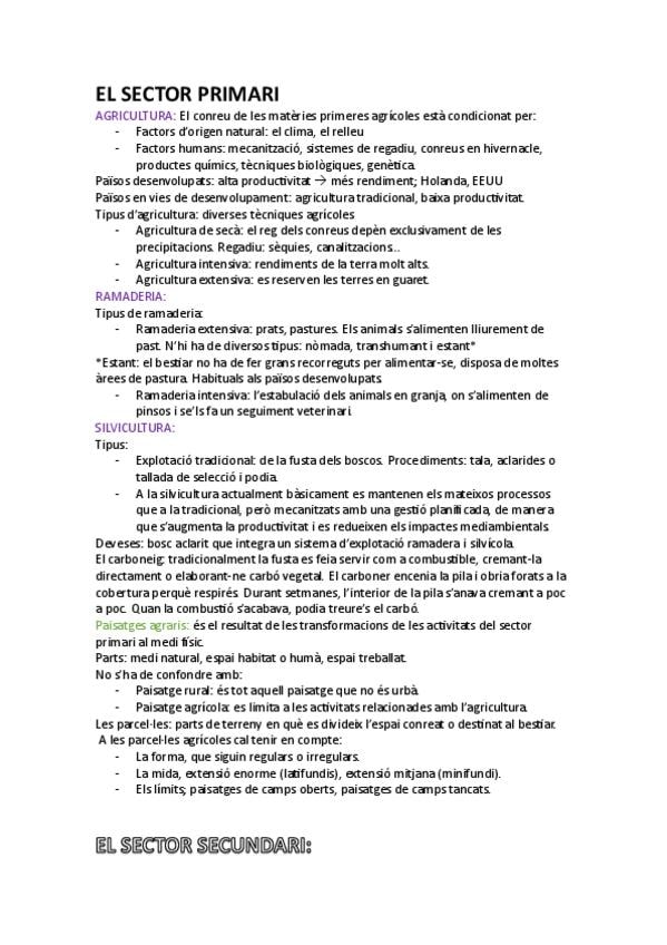 Apunts sector primari I secundari economia ciències socials de 3r eso