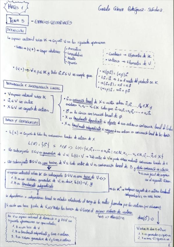 He publicado nuevos apuntes de 1º Matemáticas 1: Matemáticas para la ingeniería 1 (Álgebra) - Resúmenes de todos los temas