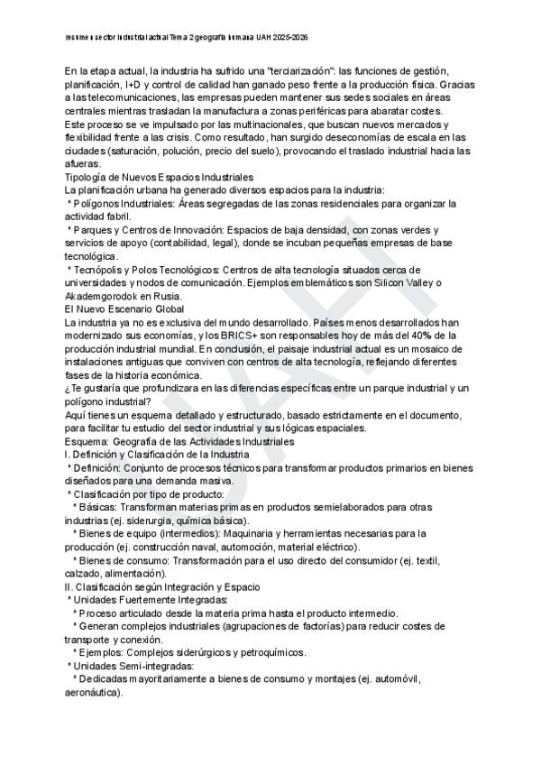 Resumen sector industrial Tema 2 Geografía Humana UAH 2025-2026