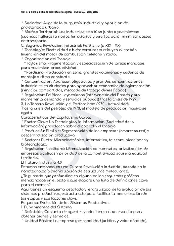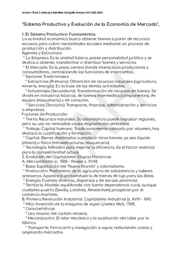 resumen sistema productivo Tema 2 Geografía Humana UAH 2025-2026