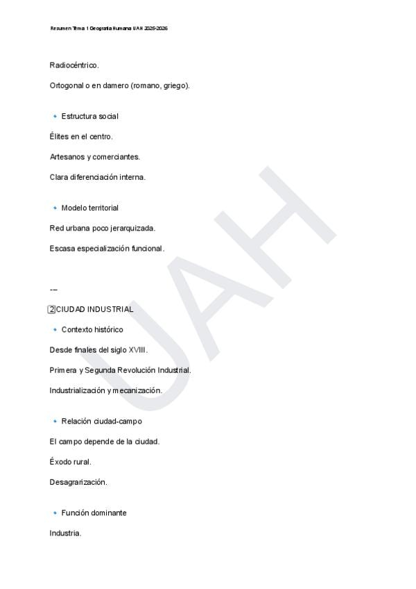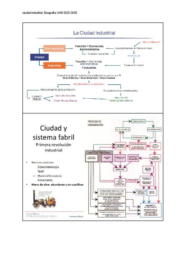 Apuntes la ciudad industrial Tema 1 Geografía Humana UAH 2025-2026