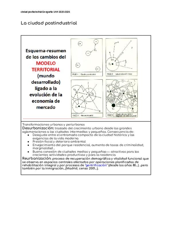 Apuntes la ciudad postindustrial Tema 1 Geografía Humana UAH 2025-2026