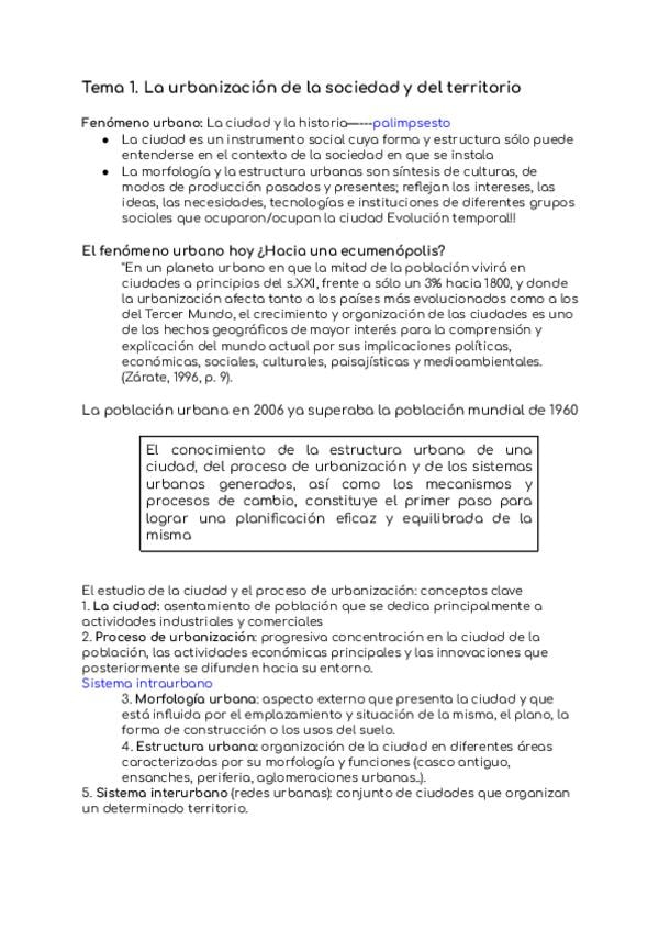 Apuntes la urbanizacion Tema 1 Geografía Humana UAH 2025-2026