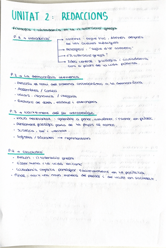 Guió redaccions filosofia - unitat 2 - filosofia i ciutadania en la il·lustració grega