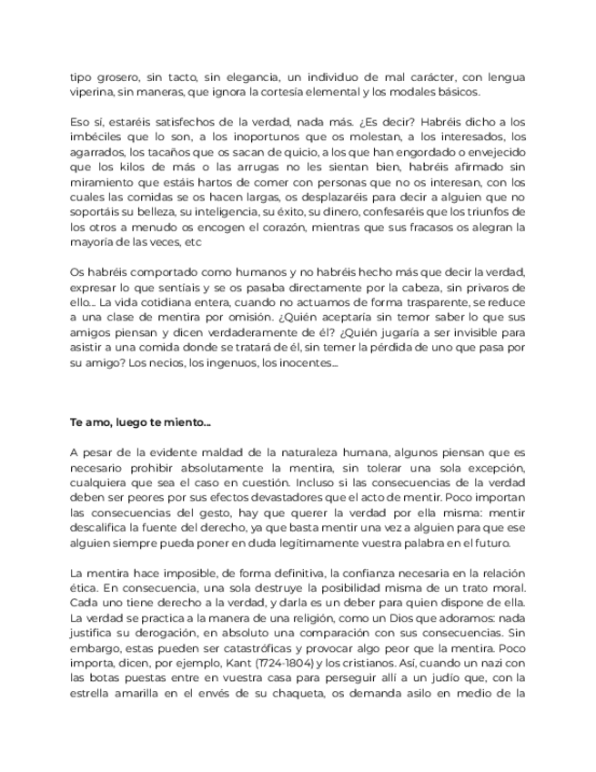 Disertación filosofía: Si hubierais engañado a vuestro(a) novio(a), ¿se lo diríais?