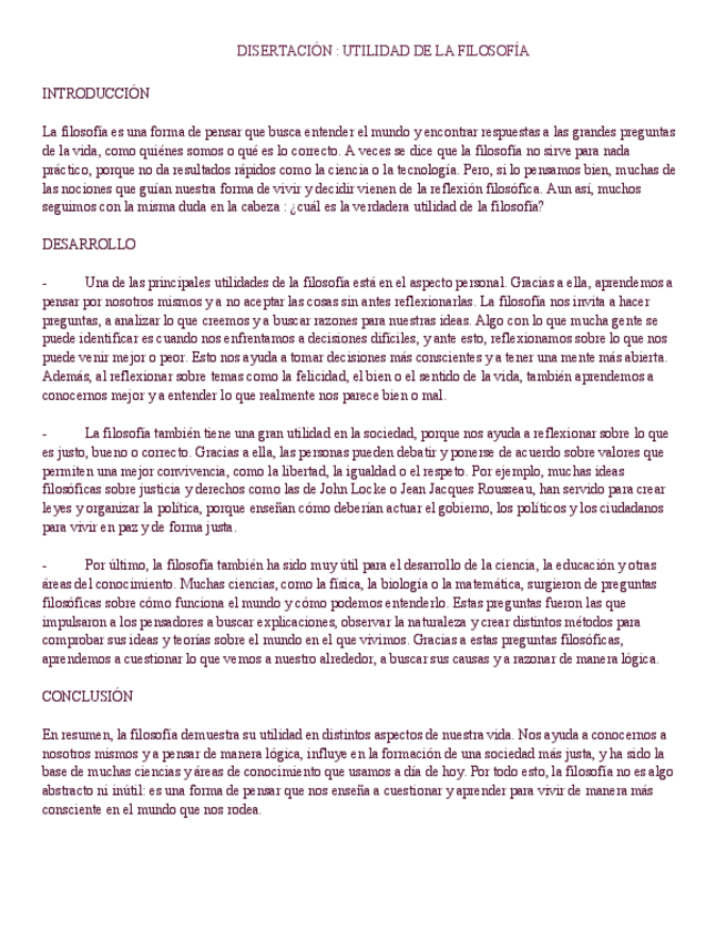 Ejemplo de disertación muy bien valorado sobre la utilidad de la filosofía. Podéis utilizarlo como guía y tomar de referencia la estructura. Muy excelente, de sobresaliente.