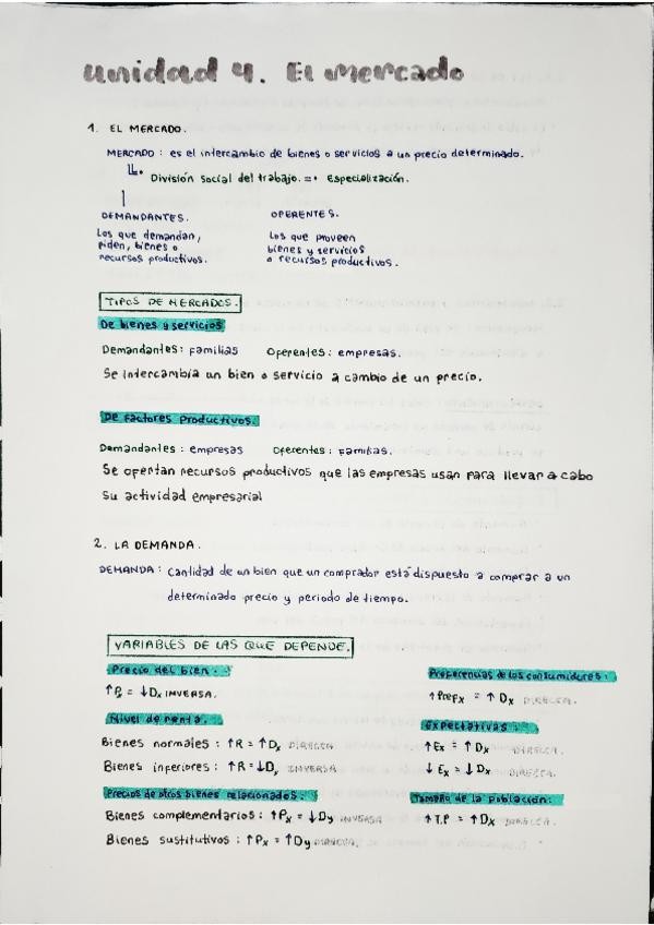 Apuntes muy fáciles ✅ , sencillos y útiles sobre el tema del mercado de economía de 1 de bachillerato.