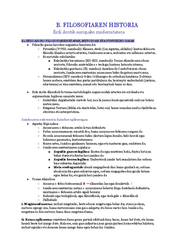 Erdi Arotik europako modernitatera Apuntes de filosofía del segundo bloke de 2. Batxi en euskera