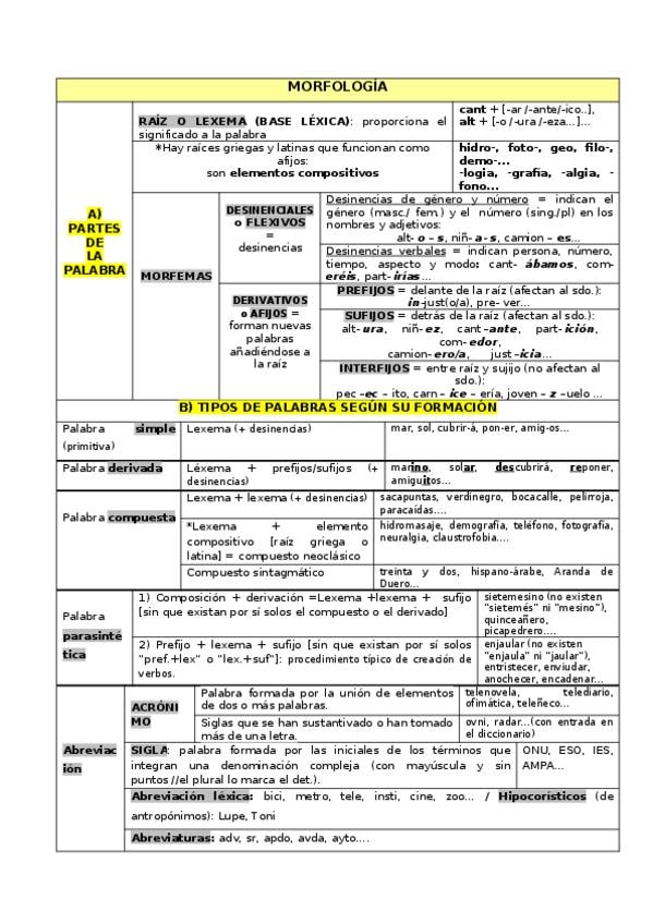 Apuntes de morfología, tipos de palabras y formación de palabras