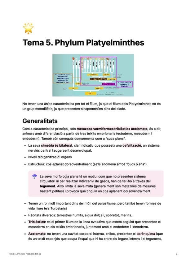 He publicado nuevos apuntes de 1º Biología Animal y Vegetal: Tema 5. phylum platyelminthes.pdf
