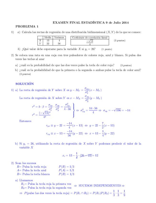 EXÁMENES JULIO DE ESTADÍSTICA CON SOLUCIÓN