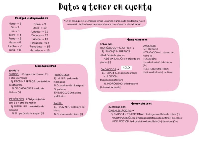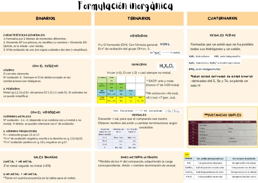 Tabla resumen Formulación inorgánica con ejemplos muy útil