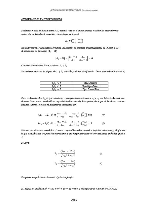 SERIES CÓNICAS.-AUTOVALORES Y AUTOVECTORES