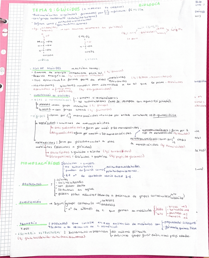 Tema glúcidos biología 2 bachillerato ( => para indicar el nombre de algo = para dar un resultado)