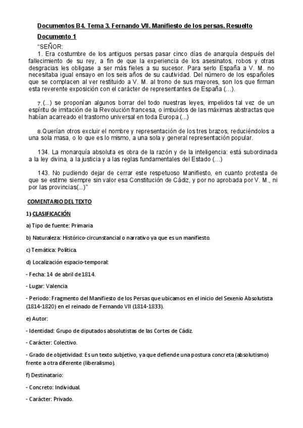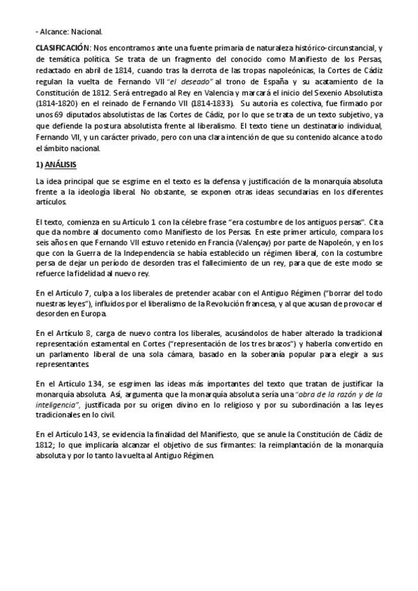 Comentario de texto del manifiesto de los persas.