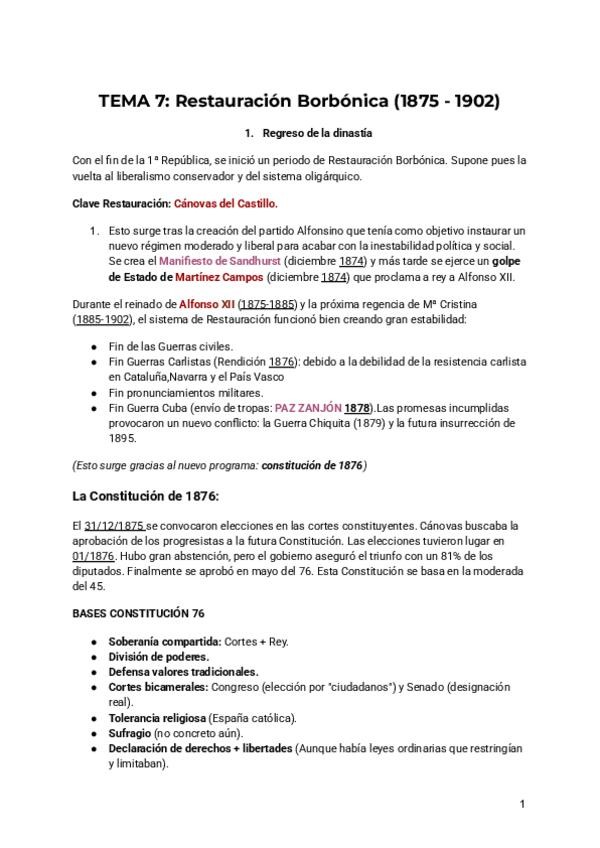 Este documento presenta un resumen sobre la restauración de Alfonso XII y todo lo que ello conlleva.