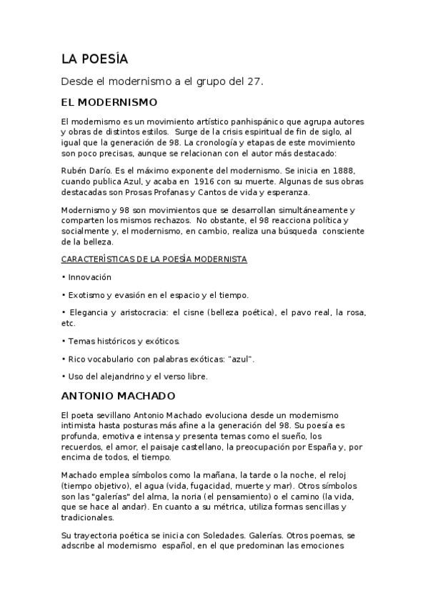 LA POESÍA Desde el modernismo a el grupo del 27.