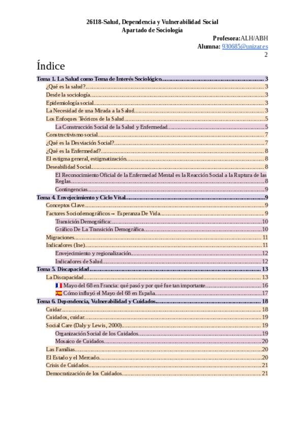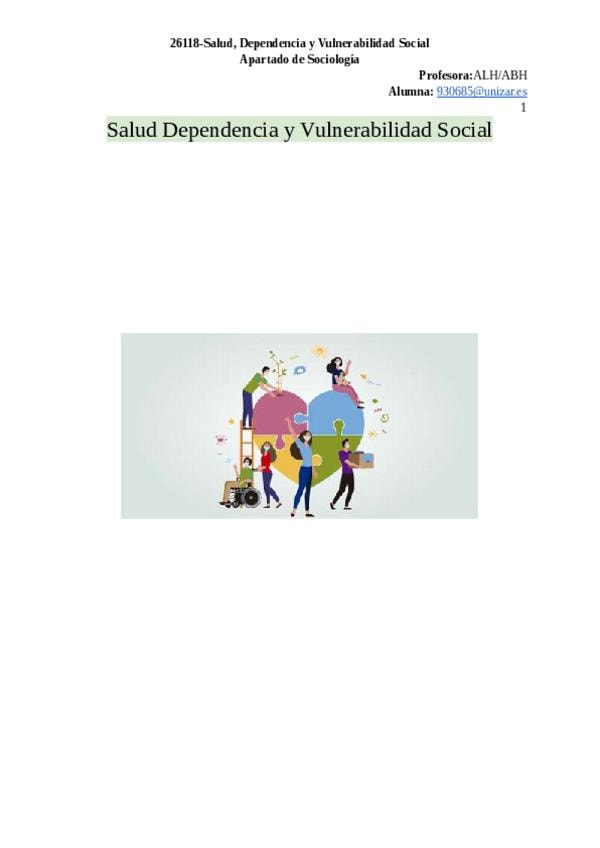 Apuntes Completos de Salud, Dependencia y Vulnerabilidad del apartado de Sociología