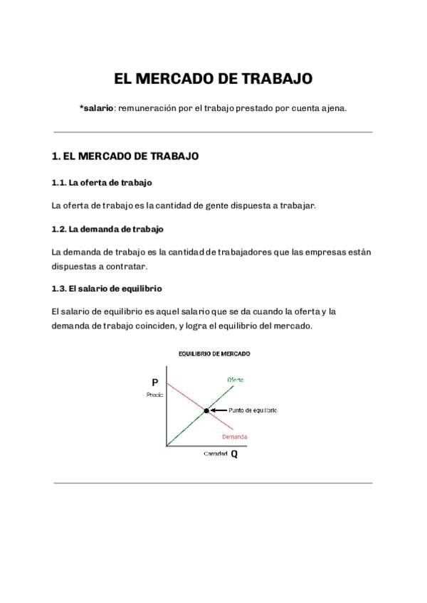 Mercado de trabajo: oferta y demanda de trabajo, desempleo (tipos y causas), estadísticas de empleo, tasas y fuentes, politicas de empleo.