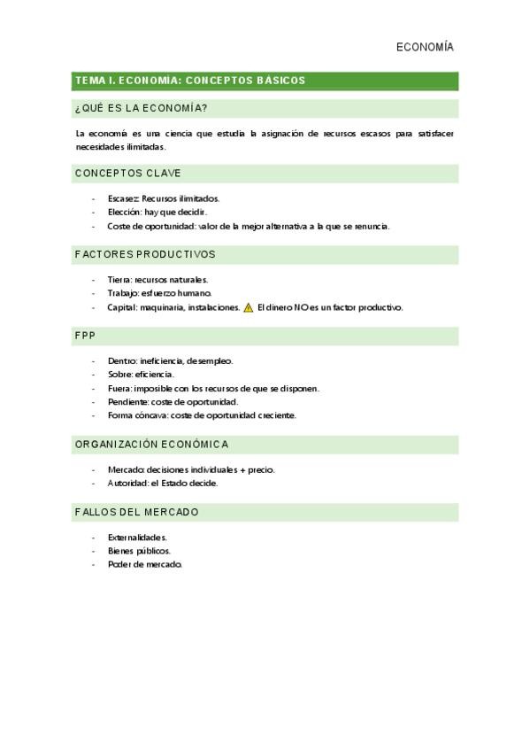 Resumen muy esquematizado de los temas 1 al 9 de economía