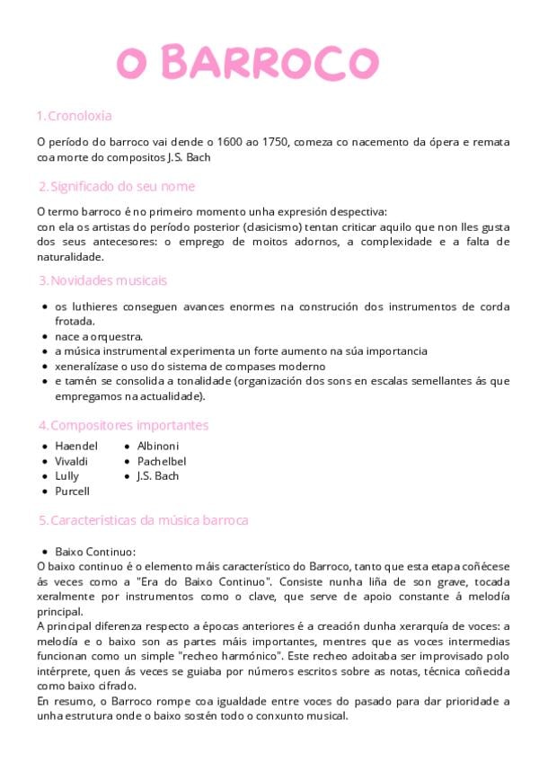 Tema en galego, resumen feito a man, o barroco musical