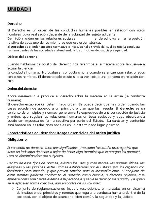 Resumen de las Unidades I y II de la matea. Derecho, concepto, características, clasificación, escuelas. Estados, elementos, teorías. El Estado y el Poder