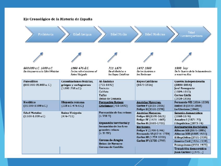 Resumen con texto e imágenes sobre los temas 1 y 2 de historia de España de la PAU en forma de power point.