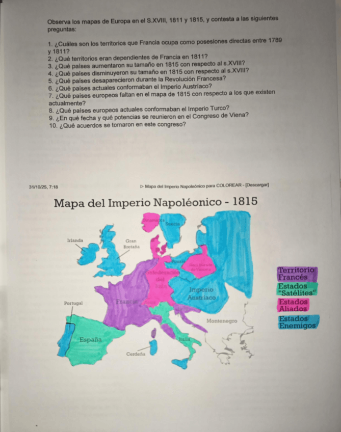 He publicado nuevos apuntes de 4º Geografia e Historia: Actividades-Napoleon.pdf