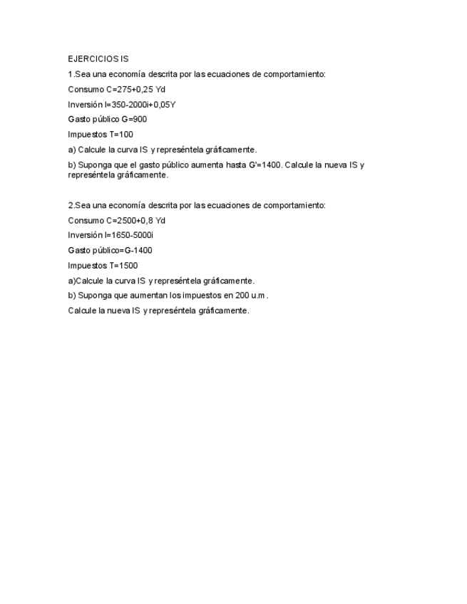 He publicado nuevos ejercicios de 1º Introducción a la Economía: Ejercicios IS