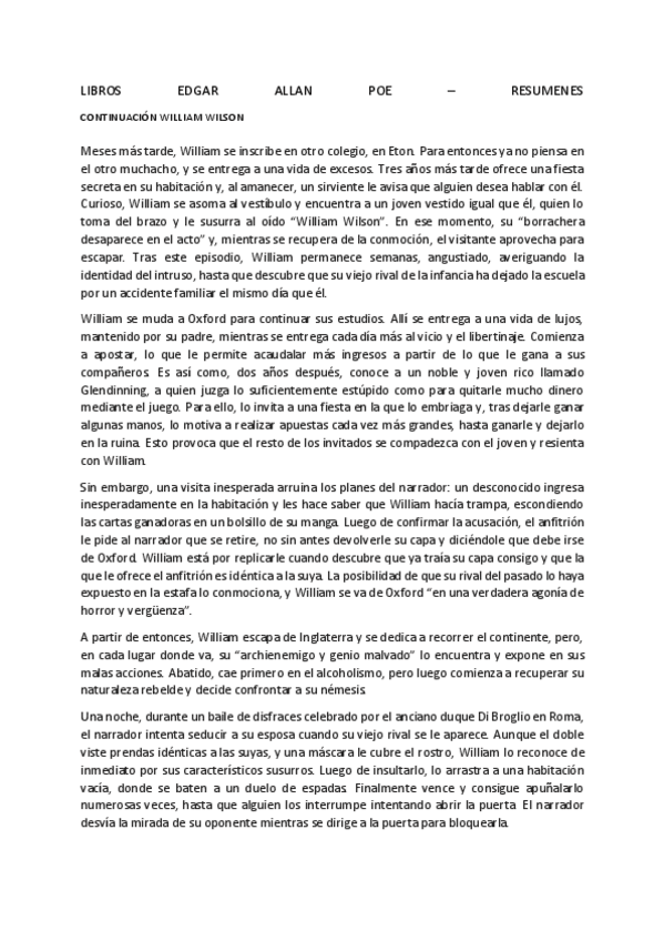He publicado nuevos otros de 2º Lengua Castellana y Literatura II: LIBROS-EDGAR-ALLAN-POE-RESUMENESCONTINUACION-WILLIAM-WILSO.pdf