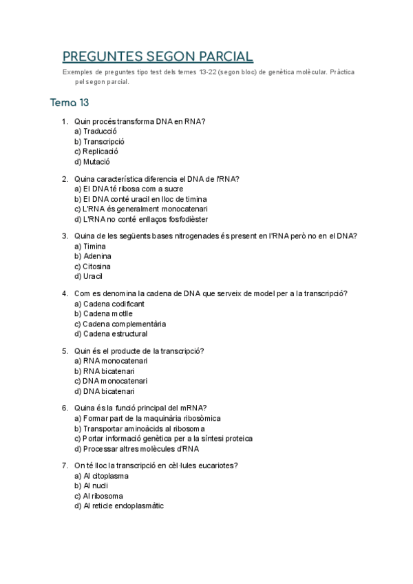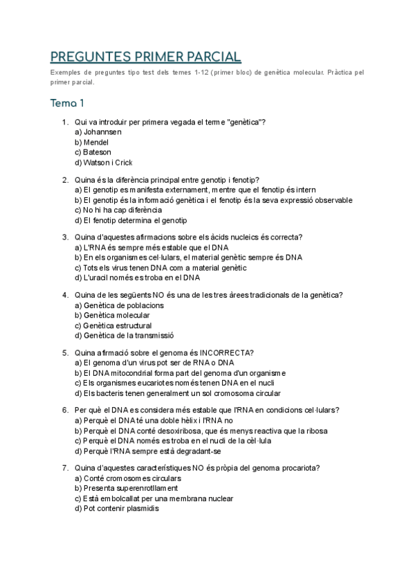 He publicado nuevos examenes de 2º Genética Molecular: tests pràctica parcials