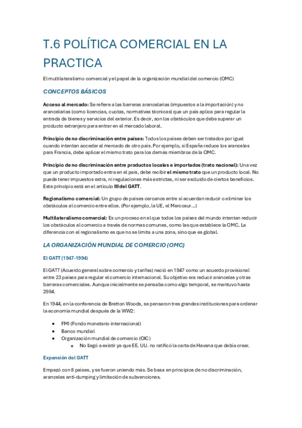 T.6 La política comercial en la práctica. Del GATT a la OMC - Eco Internacional 24-25