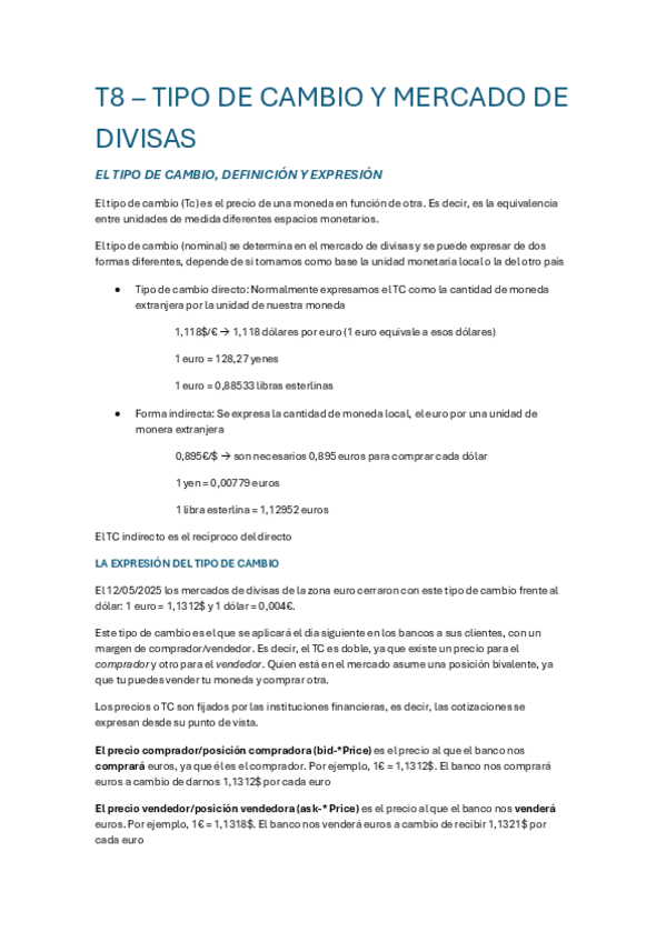 T.8 Tipo de cambio y mercado de divisas - Eco Internacional 24-25