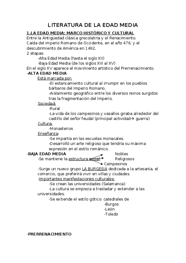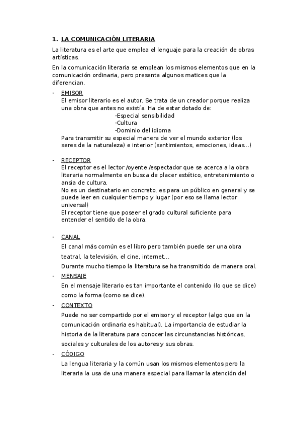LITERATURA 1º BACHILLERATO