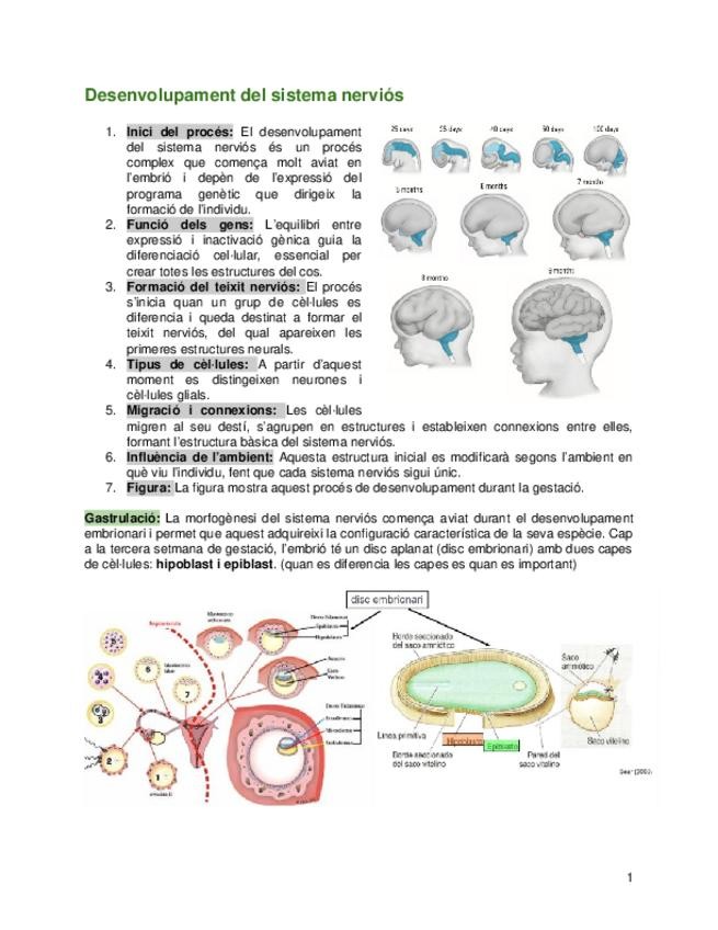 apunts bio TEMA 12_ Desenvolupament del sistema nerviós